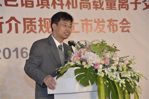 活動(dòng)起始,納微副總經(jīng)理邵宏偉首先致詞,介紹領(lǐng)導(dǎo)與來賓并熱烈歡迎其他公司代表及媒體記者。隨后,江必旺介紹了國(guó)家蛋白類新藥和疫苗發(fā)展專項(xiàng)工程實(shí)施的情況,并表示蘇州納微于2013年承擔(dān)的國(guó)家發(fā)改委、財(cái)政部、工信部和衛(wèi)計(jì)委聯(lián)合實(shí)施的“蛋白類生物藥新型工業(yè)分離純化介質(zhì)產(chǎn)業(yè)化能力建設(shè)”項(xiàng)目圓滿完成,時(shí)至今日年產(chǎn)25000升介質(zhì)產(chǎn)品的生產(chǎn)基地正式投產(chǎn)。