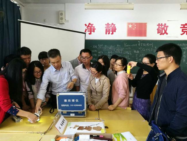 另外,我公司的工程師還就如何利用不同產(chǎn)品由淺入深,由簡到繁地引導(dǎo)啟發(fā)同學(xué)的生物學(xué)興趣,與老師們現(xiàn)場進(jìn)行了葉面積儀,葉綠素儀和葉綠素?zé)晒鈨x的演示和互動(dòng)。