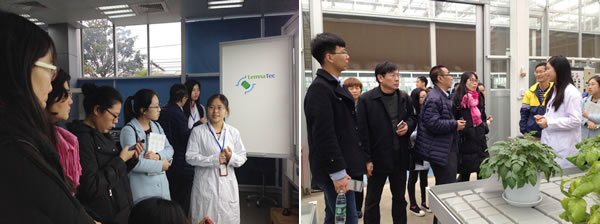 研討會的最后一項(xiàng)活動是亞洲第一個(gè)開放式高通量植物基因型-表型-育種平臺——AgriPheno的參觀考察。50多位老師在AgriPheno平臺專業(yè)團(tuán)隊(duì)的帶領(lǐng)下興致勃勃地參觀了德國LemnaTec植物表型平臺(Scanalyzer 3D、HTS、PL)、植物生理生態(tài)測量平臺、農(nóng)業(yè)云物聯(lián)網(wǎng)監(jiān)測平臺、荷蘭Priva溫室精準(zhǔn)灌溉系統(tǒng)、專業(yè)的數(shù)據(jù)庫平臺、步入式培養(yǎng)箱和人工氣候室等。一系列的參觀項(xiàng)目引起了老師的強(qiáng)烈興趣,原定的參觀時(shí)間不得不一次次的延長。AgriPheno平臺科研人員專業(yè)、詳細(xì)的講解獲得了老師的交口稱贊,許多老師表示平臺這種服務(wù)模式先進(jìn)化、人性化,對科研的推動具有不可或缺的價(jià)值!