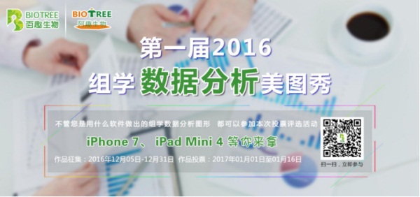 論是基因組學(xué)、轉(zhuǎn)錄組學(xué)、蛋白質(zhì)組學(xué)、代謝組學(xué)或是脂質(zhì)組學(xué),組學(xué)的數(shù)據(jù)收集是科研人員面臨的一個問題,但肯定不是最大問題。大多數(shù)人都同意,更大的問題是弄清楚組學(xué)數(shù)據(jù)集到底意味著什么。一年辛苦耕耘,在此2016年末之際,盡管組學(xué)數(shù)據(jù)分析仍存在巨大的瓶頸,但正所謂“高手在民間”,BIOTREE特此舉辦“第一屆2016組學(xué)數(shù)據(jù)分析美圖秀”的活動,望各位生物達(dá)人熱烈參與,相互切磋,共同進(jìn)步!