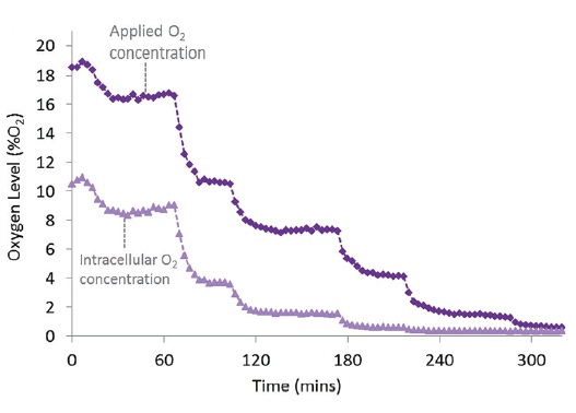 細胞內(nèi)氧含量水平對細胞的生理狀態(tài),信號傳導以及細胞對藥物處理的應(yīng)激反應(yīng)有顯著的影響。由于技術(shù)原因,之前的研究更多集中在,通過檢測細胞胞外氧含量變化情況,進而間接評估細胞代謝速率的差異以及相應(yīng)的胞內(nèi)氧含量相對水平。然而,影響胞內(nèi)氧含量的因素不僅包括細胞代謝速率差異,同時也包括細胞組織類型,環(huán)境氧濃度,細胞密度等易被忽視的因素。
