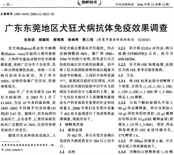 2、廣東地區(qū)狂犬病抗體免疫效果調(diào)查報告中提及的試劑盒特異性和靈敏性,與病毒中和實驗FAVN比較