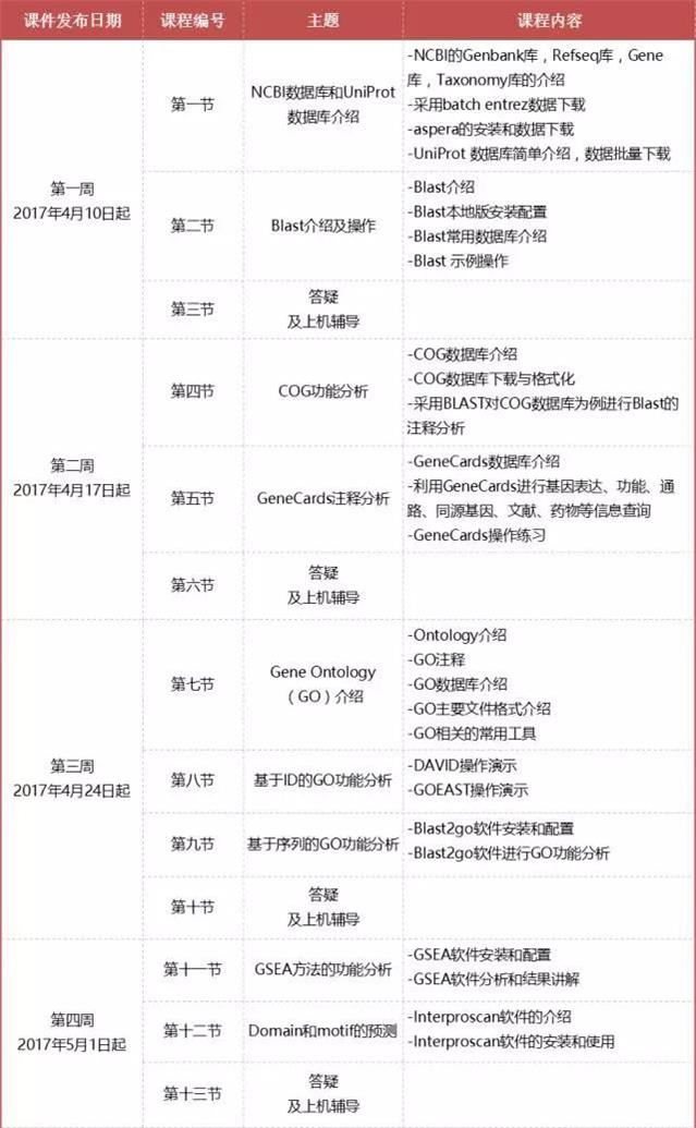課程里涉及的所有數(shù)據(jù)庫及軟件工具,都公開免費或開源的,確保大家學(xué)習(xí)之后都可以直接使用。授課老師均為戰(zhàn)斗在生物信息學(xué)第一線的青年才俊,他們具有非常豐富的實踐經(jīng)驗和極強的數(shù)據(jù)處理能力。對于課程大量的軟件操作練習(xí),授課老師也會事先錄好操作視頻,發(fā)放給學(xué)員,大家可以反復(fù)觀看,直到真正掌握為止。如果在操作練習(xí)中遇到任何自己解決不了的問題,也完全不用擔(dān)心,我們每周都安排了充裕的答疑時間,授課老師會在答疑時段幫大家溫習(xí)課程的知識點,并對遇到問題和困難的學(xué)員進行一對一地遠程指導(dǎo)!