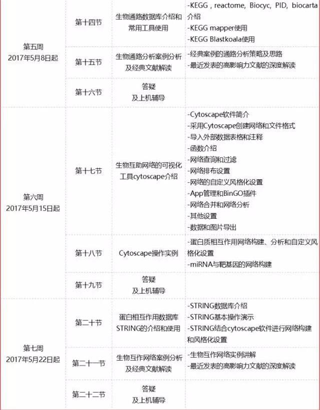 如果你也有以上這些疑問,歡迎來本次“生物分子功能注釋與生物通路分析網(wǎng)絡(luò)培訓(xùn)班”的課程里尋找答案!本次課程有豐富的實戰(zhàn)練習(xí),手把手教你如何沖出大數(shù)據(jù)的重圍,笑傲江湖! 事實上,我們在2016年秋季舉辦過一次生物通路分析現(xiàn)場培訓(xùn)班!一周之內(nèi)就報名滿員,還有不少小伙伴因為不便出差,以及各種原因,未能到場學(xué)習(xí),表示十分遺憾!為了服務(wù)更多有學(xué)習(xí)需要的朋友們,且為了避免現(xiàn)場培訓(xùn)的諸多限制,我們又精心組織了本次網(wǎng)絡(luò)培訓(xùn)班。所有視頻課件會提前錄制好,根據(jù)課程進度,每周發(fā)布相應(yīng)的課件給學(xué)員,大家可以靈活地選擇學(xué)習(xí)時間及觀看課件的次數(shù),實現(xiàn)高效的個性化學(xué)習(xí)!除了形式上的改變,在課程上也有不少改進和更新,內(nèi)容擴增至15堂大課+7堂答疑及上機指導(dǎo),力求給大家更有營養(yǎng)的學(xué)習(xí)大餐!