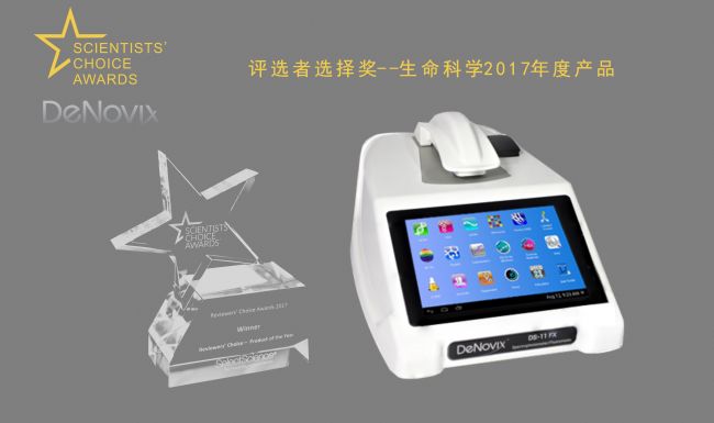 2017年4月3日,在華盛頓舉辦的美國AACR大會,舉辦了2017年度科學(xué)家選擇獎頒獎典禮,Denovix憑借DS-11FX+超微量/熒光全功能光度計(jì)一舉榮膺改獎項(xiàng)的壓軸大獎評選者選擇獎—生命科學(xué)2017年度產(chǎn)品