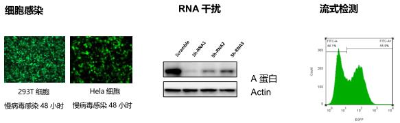 2. 慢病毒載體帶有可進行高效率的包裝、轉(zhuǎn)染并穩(wěn)定整合進靶細胞的基因組中的序列元件,具有一次包裝,多次使用病毒的特點,為實驗的穩(wěn)定性提供保障。