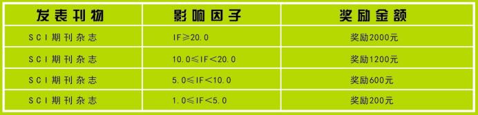 在SCI期刊或中文核心期刊雜志收錄的文章,獎勵額度依據(jù)文章發(fā)表時雜志的SCI影響因子,具體獎勵如下: