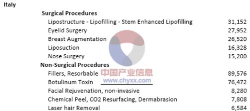 產(chǎn)業(yè)信息網(wǎng)發(fā)布的《2015-2020年中國美容整形市場年度調(diào)研及前景趨勢報告》顯示,意大利整形美容行業(yè)的發(fā)展得益于本土愛美人士對美的追求,以及行業(yè)的技術(shù)的逐漸成熟。醫(yī)療事故的減少,手術(shù)效果的增強使得人們越來越依賴于整形。意大利整形美容行業(yè)成為了發(fā)展前景最好的行業(yè),除了因為人們對整形接受度的提高之外,與醫(yī)療旅游業(yè)的發(fā)展也分不開。