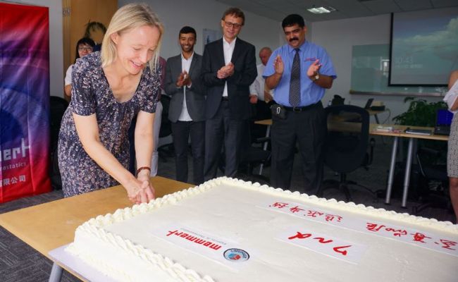 伴隨著Karpa女士切下了蛋糕的第一刀慶典的歡樂氣氛達(dá)到高潮,在座同事共舉香檳,齊表祝愿。來自英國、法國及美墨爾特(上海)的同事針對(duì)市場推廣與應(yīng)用案例做了介紹與交流。