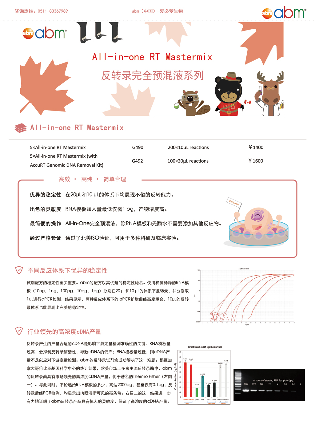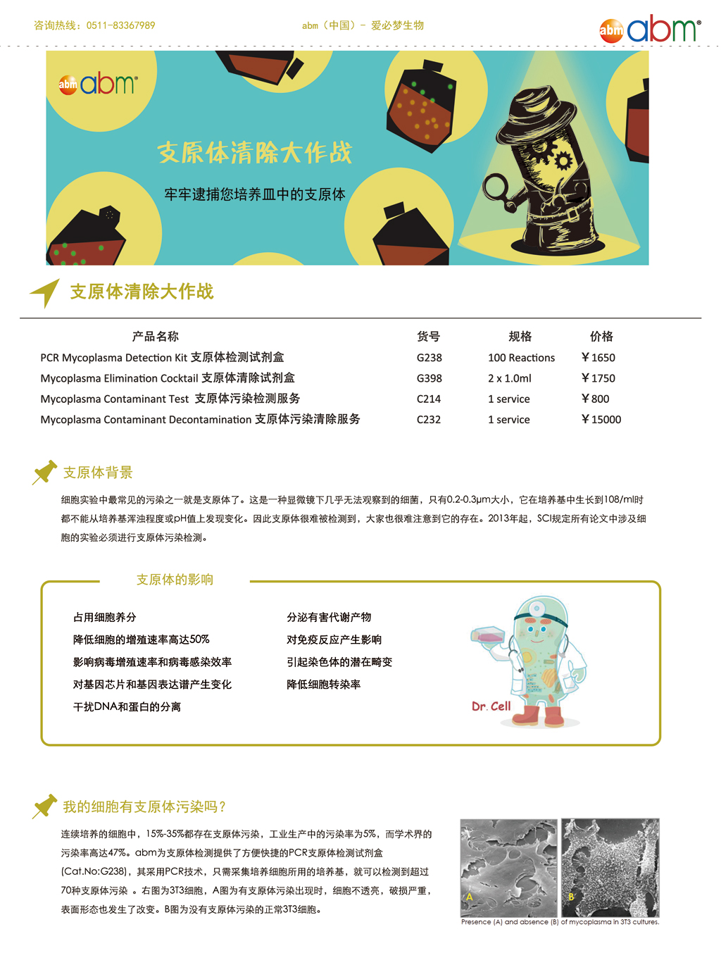 Applied Biological Materials(abm)Inc. 在北美發(fā)展超過(guò)十年,口碑優(yōu)異,是全世界細(xì)胞材料和病毒載體的領(lǐng)導(dǎo)者,平均每天都有2篇以上SCI引用我公司產(chǎn)品而被成功發(fā)表。