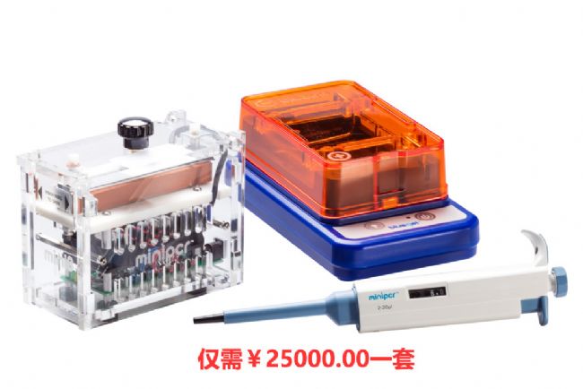 套裝含便攜式PCR儀一臺、藍光電泳透射成像一體儀器一套、移液器一支。