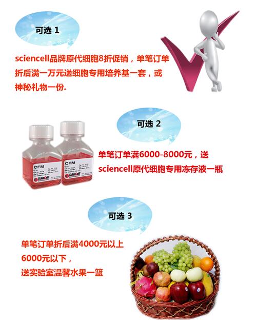 中喬新舟攜sciencell原代細胞,開學季大獻禮,折后有送,9月集中促銷,三種不同的促銷活動,可以任選一種進行,不一樣的開學季,超大鉅惠送給不一樣的你。