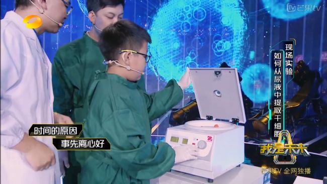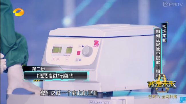 作為一檔科技秀節(jié)目,《我是未來》從來不缺少當(dāng)今最前沿的科技,但本期節(jié)目可以說為了科學(xué)展示也是拼盡了全力,首次“動了真格”,現(xiàn)場竟然直接搭建起了一個迷你版的生物實驗室,李銳和一個小朋友觀眾作為此次“科學(xué)實習(xí)生”,在舞臺上參與最尖端的科學(xué)實驗。他們在超凈臺上將尿樣倒入試管,借助奧豪斯FC5706離心機現(xiàn)場離心尿液,尿液中的細胞沉淀在試管底,細胞團顯而易見。從顯微鏡下,真實干細胞的各個分裂階段都呈現(xiàn)在觀眾眼前,引起了現(xiàn)場觀眾的陣陣驚呼:“竟然能夠看到人體細胞太神奇了”、“現(xiàn)場分離干細胞,讓人難以置信”……整個過程讓全場觀眾共同見證了能夠讓人返老還童、長生不老的多功能干細胞的現(xiàn)場培育,帶來了一場生命科學(xué)領(lǐng)域里真實而又震撼的近距離體驗!
