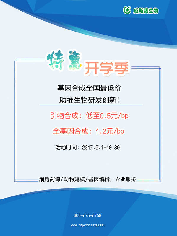 威斯騰特惠開學季,基因合成全國最低價,助推生物研發(fā)創(chuàng)新!