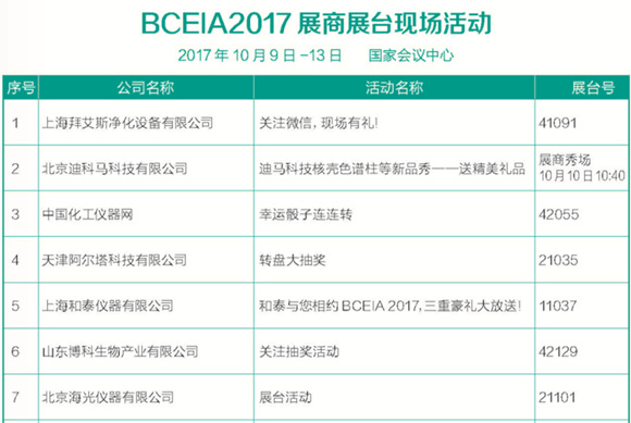 BCEIA2017展商展臺現(xiàn)場活動表