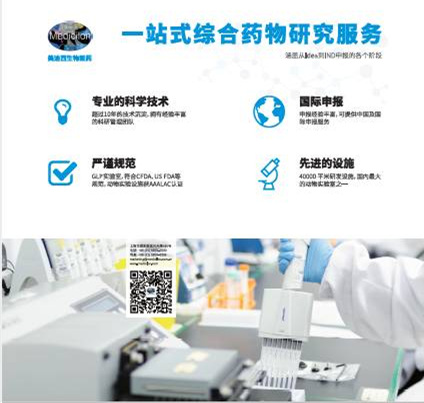 美迪西被譽(yù)為中國最頂尖的藥物研發(fā)外包服務(wù)公司(CRO)之一,在上海建立了中國第一家集化合物合成、化合物活性篩選、結(jié)構(gòu)生物學(xué)、藥效學(xué)評價、藥代動力學(xué)評價、毒理學(xué)評價、制劑研究和新藥注冊為一體的符合國際標(biāo)準(zhǔn)的綜合技術(shù)服務(wù)平臺,并得到了國際藥品管理部門的認(rèn)可。美迪西是中國本土CRO中最早實現(xiàn)國際化的公司之一,2008年與美國MPI Research公司合作建立美迪西普亞,專注于臨床前的藥代動力學(xué)和安全評價研究。美迪西普亞的動物實驗設(shè)施獲得AAALAC(國際動物評估與認(rèn)證協(xié)會)認(rèn)證和中國食品藥品監(jiān)督管理局GLP證書,并已達(dá)到美國食品藥品管理局GLP標(biāo)準(zhǔn)。美迪西以高效、高性價比的一站式專業(yè)服務(wù)幫助客戶更快地達(dá)到目標(biāo)。
