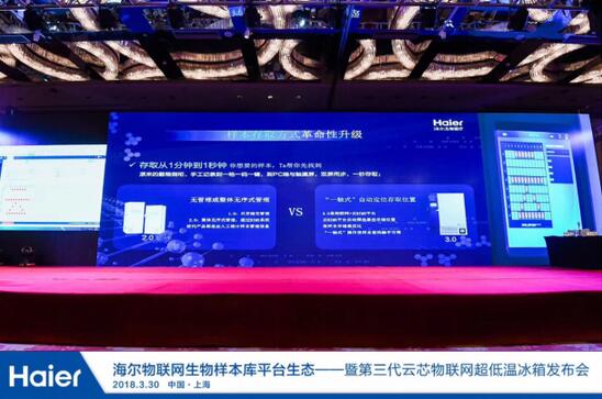 海爾“顛覆芯生云開未來”物聯(lián)網(wǎng)生物樣本庫平臺生態(tài)暨全球第三代云芯物聯(lián)網(wǎng)超低溫冰箱發(fā)布會,與全國生物樣本庫十年大會同期舉行。此次發(fā)布會上,海爾發(fā)布了物聯(lián)網(wǎng)生物樣本庫平臺生態(tài)包括物聯(lián)網(wǎng)時代引爆單品—云芯超低溫冰箱、云BIMS3.0生物樣本庫平臺方案和首個中國生物樣本庫共創(chuàng)共享生態(tài)。