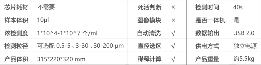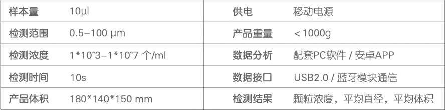 檢測(cè)芯片類型:TYPE-A(0.5-5 μm)、TYPE-B(3-30 μm)、TYPE-C(10-100 μm)。