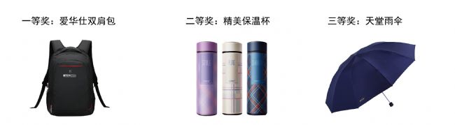 ![]() 展臺(tái)準(zhǔn)備了抽獎(jiǎng)活動(dòng),獎(jiǎng)品有愛(ài)華仕雙肩包、精美保溫杯、雨傘等,還有計(jì)時(shí)器、筆記本、萌萌噠浮漂等精美禮品,歡迎索取哦! |