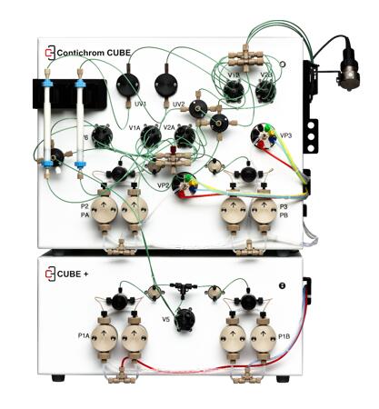 ChromaCon AG是一家瑞士生物技術(shù)企業(yè),致力于整合化層析和連續(xù)流層析技術(shù),擁有Contichrom CUBE層析系統(tǒng)。采用最優(yōu)雙柱位設(shè)計(jì),可運(yùn)行多種分離模式,包括蛋白捕獲CaptureSMB®、梯度洗脫精制 MCSGP®、組分富集N-Rich®、流穿模式離Flow-2®、雙柱串聯(lián)Integrated 2-step等,以及動(dòng)態(tài)控制技術(shù)AutomAb®、MControl®等。與LEWA公司合作開(kāi)發(fā)有配套EcoPrime Twin生產(chǎn)級(jí)設(shè)備。