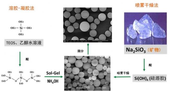 傳統(tǒng)溶膠-凝膠法和噴霧干燥法制備硅膠填料原理