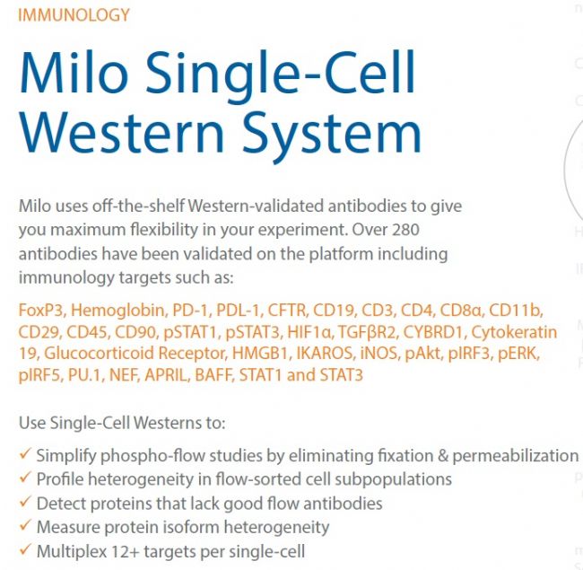 ProteinSimple的研究人員,全力推動Milo在各生命醫(yī)學研究領域應用,驗證了大量在各領域內抗體數據。