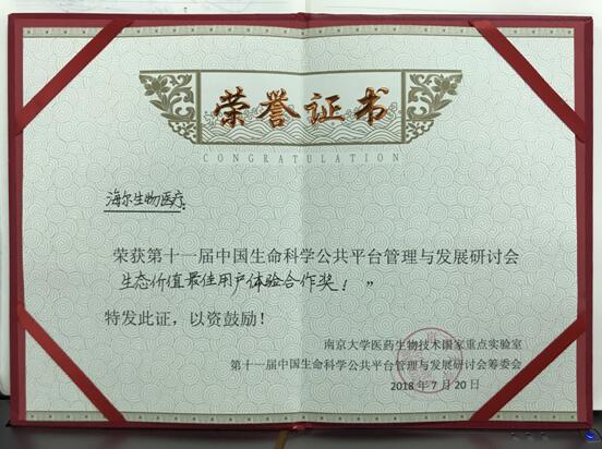 海爾獲生命科學(xué)研討會(huì)"生態(tài)價(jià)值最佳用戶(hù)體驗(yàn)合作獎(jiǎng)"