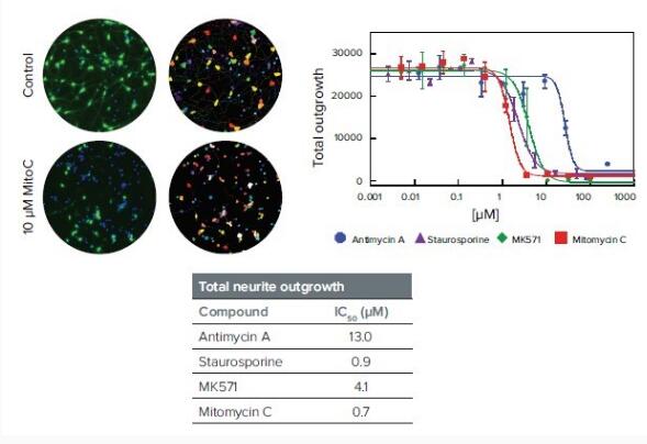 誘導(dǎo)多功能干細胞技術(shù)在神經(jīng)元毒性的研究中是非常重要的,iPSCs可以大批量被誘導(dǎo)培養(yǎng)和展示成熟神經(jīng)元的功能。如果將這種獨特的生物學(xué)相關(guān)的細胞類型和高通量成像分析結(jié)合在一起,我們就可以快速地篩選出在引起神經(jīng)元毒性中起主導(dǎo)作用的化合物,從而大大減少臨床前研究和相關(guān)動物實驗的成本。