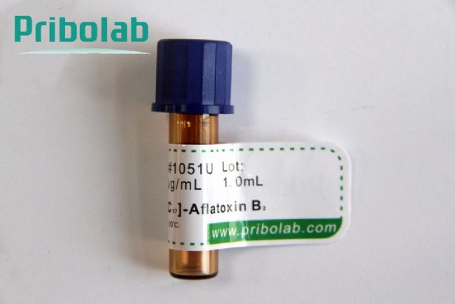 Pribolab真菌毒素穩(wěn)定同位素13C標記物質(zhì),采用獨有的高新技術(shù)實現(xiàn)了真菌毒素結(jié)構(gòu)中的所有碳原子被穩(wěn)定同位素13C 所取代,實現(xiàn)兩者之前的分子量差異,從而可以應(yīng)用MS 進行區(qū)分,有效消除了一些基質(zhì)干擾、回收率偏差等,完全滿足2017年整合的真菌毒素新國標要求,尤其適合于樣品中真菌毒素多組分分析。