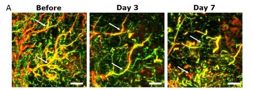 移植7天皮下腫瘤血管觀察(右圖為實(shí)時(shí)采集的圖像)