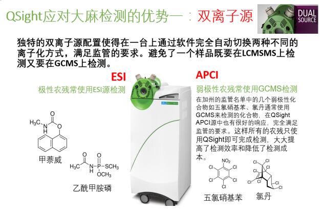 因?yàn),珀金埃爾?臺QSight LC-MS/MS就能完成其他品牌需要1臺LC-MS/MS+1臺GC-MS才能完成的大麻檢測工作。