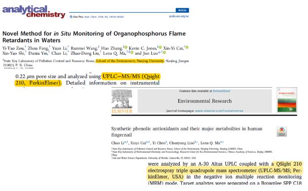 國內(nèi)的科研工作者紛紛使用珀金埃爾默的QSight LC-MS/MS,并做出了顯著的成績,多篇科研文章發(fā)表在《Analytical Chemistry》2017 Impact Factor: 6.042、《Environmental Research》2017 Impact Factor: 4.732、《Chemical Engineering Journal》2017 Impact Factor: 6.735 。從側(cè)面反映出珀金埃爾默的QSight LC-MS/MS,經(jīng)受住了科研學(xué)術(shù)的客戶的考驗(yàn),得到了市場的認(rèn)可。