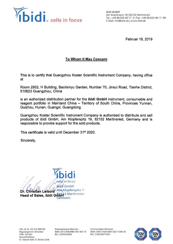 科適特科學(xué)儀器成為德國(guó)ibidi公司正規(guī)簽約授權(quán)代理商