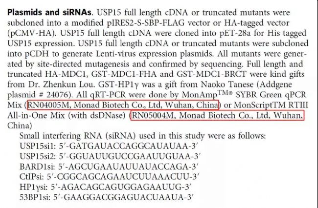 莫納生物的三代逆轉(zhuǎn)錄和抗體法 qPCR mix 兩款產(chǎn)品有幸助力此項(xiàng)研究。