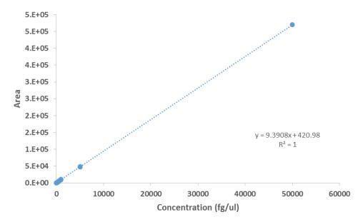 圖2 目標(biāo)肽段的標(biāo)準(zhǔn)曲線(濃度范圍5fg/µl-50000fg/µl)