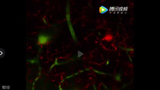 視頻1.活體小鼠大腦毛細(xì)血管內(nèi)的血細(xì)胞流動(dòng)和相應(yīng)神經(jīng)細(xì)胞的分布。