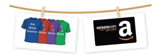 同一個實驗室內,參加者的成績可以累積,實驗室排行榜最高的將獲得超值獎勵,每人一張50元亞馬遜卡和一件創(chuàng)意多彩T恤,上限10人。