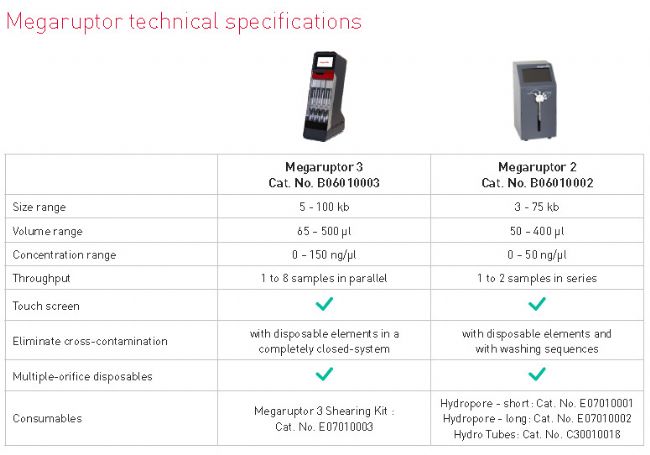 ®系列制備150bp - 2KB)和一個獨特的流體剪切儀(Megaruptor