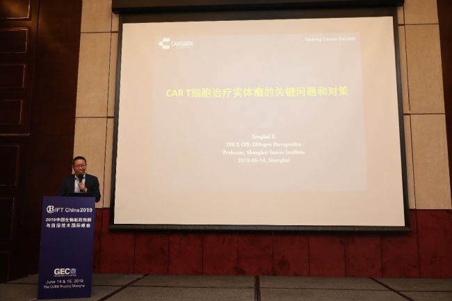 本次研討會特邀科濟生物CEO&CSO 李宗海博士進行了“CAR T細胞治療實體瘤的關鍵問題和對策”的報告,作為國內實體瘤領域細胞治療的領獎企業(yè),科濟生物有多個臨床階段和臨床前的細胞治療項目,有血液腫瘤到實體瘤項目全覆蓋。李博士結合自己多年研究和產品開發(fā)經驗,分享了目前細胞治療實體瘤領域兩個重要挑戰(zhàn),腫瘤特異性靶點選擇和腫瘤微環(huán)境對實體瘤CAR-T影響,以Claudin 18.2靶點選擇和開發(fā)為例,給出了科濟生物的解決方案。