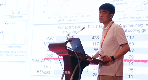 北京大學(xué)生命科學(xué)學(xué)院魏文勝研究員作為第三位大會(huì)報(bào)告嘉賓,分享了其課題組近期發(fā)表在Nature子刊的重要研究成果,為大家介紹了一種全基因組篩選lncRNA的CRISPR新方法,通過構(gòu)建剪接靶向sgRNA的全基因組文庫,可大大提高HTS的效率和數(shù)據(jù)質(zhì)量,從而對功能性lncRNAs進(jìn)行全基因組篩選;同時(shí),還介紹了一種以單氨基酸分辨率繪制目的蛋白質(zhì)功能位點(diǎn)的新方法。這將有助于在各種環(huán)境中準(zhǔn)確、快速地鑒定功能基因組元件,并進(jìn)一步擴(kuò)展了用于哺乳動(dòng)物遺傳學(xué)的CRISPR研究工具。