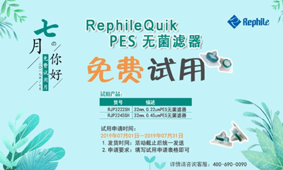 試用產(chǎn)品:RephiQuik PES 無菌針頭式過濾器試用周期:2019年7月1日 - 7月31日