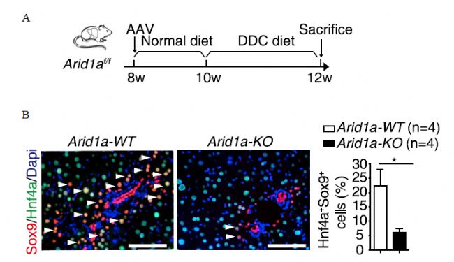 Fig.2 Arid1a通過染色質(zhì)重塑控制肝臟祖細胞樣細胞的形成