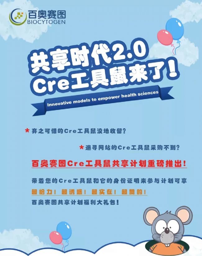百奧賽圖推出“Cre工具鼠共享計(jì)劃”