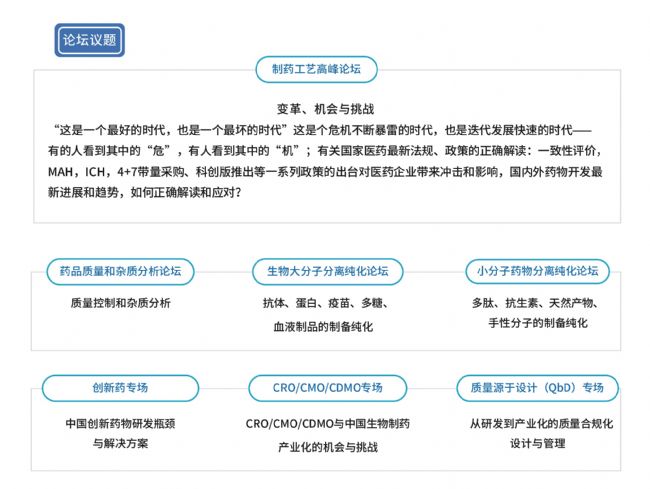論壇簡介由蘇州工業(yè)園區(qū)醫(yī)藥分離純化產(chǎn)業(yè)聯(lián)盟協(xié)會(huì)主辦的“制藥分離純化技術(shù)學(xué)術(shù)論壇”已成功舉辦五屆,邀請來自國內(nèi)外報(bào)告嘉賓200+位,累計(jì)吸引國內(nèi)外從事分離純化行業(yè)的專家和技術(shù)人員近2500+位,對國內(nèi)醫(yī)藥行業(yè)的發(fā)展起到了很好的推動(dòng)作用,已成為國內(nèi)最專業(yè)、規(guī)模最大和反響最熱烈的分離純化行業(yè)專題論壇之一。目前我國的生物醫(yī)藥正處于高速發(fā)展及變革階段,受益于醫(yī)藥創(chuàng)新政策不斷催化,一致性評(píng)價(jià)快速推進(jìn)、藥審改革不斷提速、醫(yī)藥內(nèi)生需求逐步釋放、醫(yī)保政策逐步完善和科創(chuàng)版推出,給醫(yī)藥行業(yè)帶來了巨大的發(fā)展機(jī)遇與顛覆性挑戰(zhàn)。為進(jìn)一步滿足醫(yī)藥行業(yè)宏觀政策的解讀,把握行業(yè)發(fā)展趨勢和機(jī)會(huì),解決行業(yè)發(fā)展的難點(diǎn)、熱點(diǎn)問題,以及對整個(gè)醫(yī)藥上下游產(chǎn)業(yè)鏈相關(guān)技術(shù)協(xié)同發(fā)展的需求,我們在此誠摯邀請來自政府職能部門、中檢院、國內(nèi)外研發(fā)機(jī)構(gòu)、制藥企業(yè)和CRO/CMO/CDMO企業(yè)的專家學(xué)者和高校師生參加2019制藥工藝(蘇州)高峰論壇(PPS)暨第六屆制藥分離純化技術(shù)學(xué)術(shù)論壇,共同探討行業(yè)發(fā)展的共性問題和解決方案,共享發(fā)展經(jīng)驗(yàn),共同促進(jìn)中國醫(yī)藥產(chǎn)業(yè)的發(fā)展和進(jìn)步!