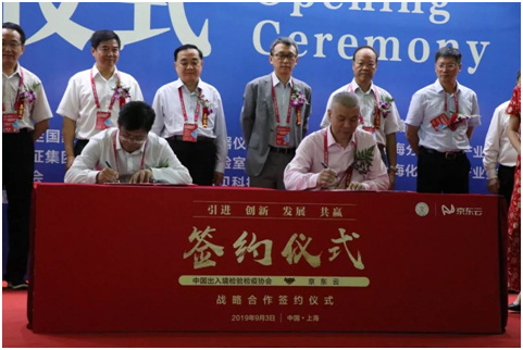 京東集團(tuán)京東云華北大區(qū)總經(jīng)理戢凡峰先生與中國(guó)出入境檢驗(yàn)檢疫協(xié)會(huì)秘書(shū)長(zhǎng)段小紅先生共同簽署戰(zhàn)略協(xié)議書(shū)