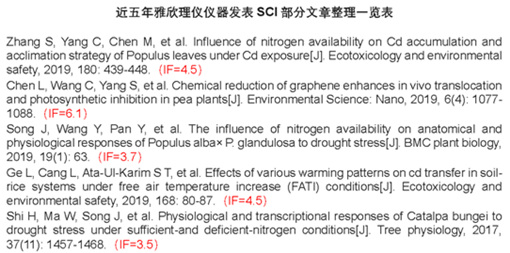 在過去的17年間,雅欣理儀為我國眾多大專院校、科研院所及農(nóng)林監(jiān)測站提供了多臺植物生理生態(tài)儀器,據(jù)不完全統(tǒng)計,利用我司儀器共發(fā)表900余篇中外文章,其中發(fā)表中文核心期刊750余篇,英文被SCI收錄170余篇,中文外文發(fā)文比例為4:1。