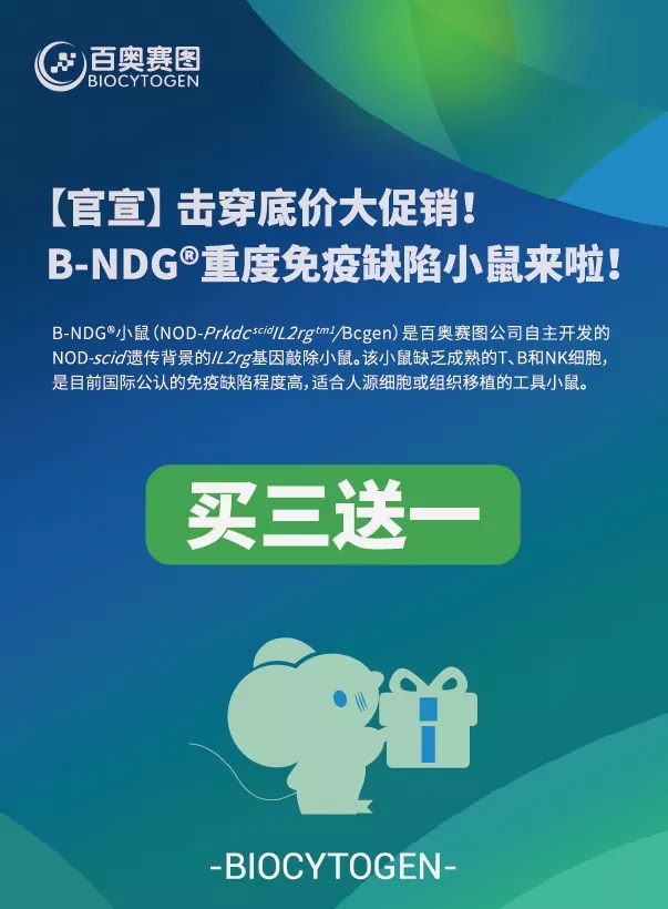 B-NDG®小鼠(NOD-Prkdcscid IL2rgtm1/Bcgen)是百奧賽圖公司自主開發(fā)的,NOD-scid 遺傳背景的IL2rg基因敲除小鼠,缺乏成熟的T、B和NK細(xì)胞,是目前國際公認(rèn)的免疫缺陷程度高、適合人源細(xì)胞或組織移植的工具小鼠。