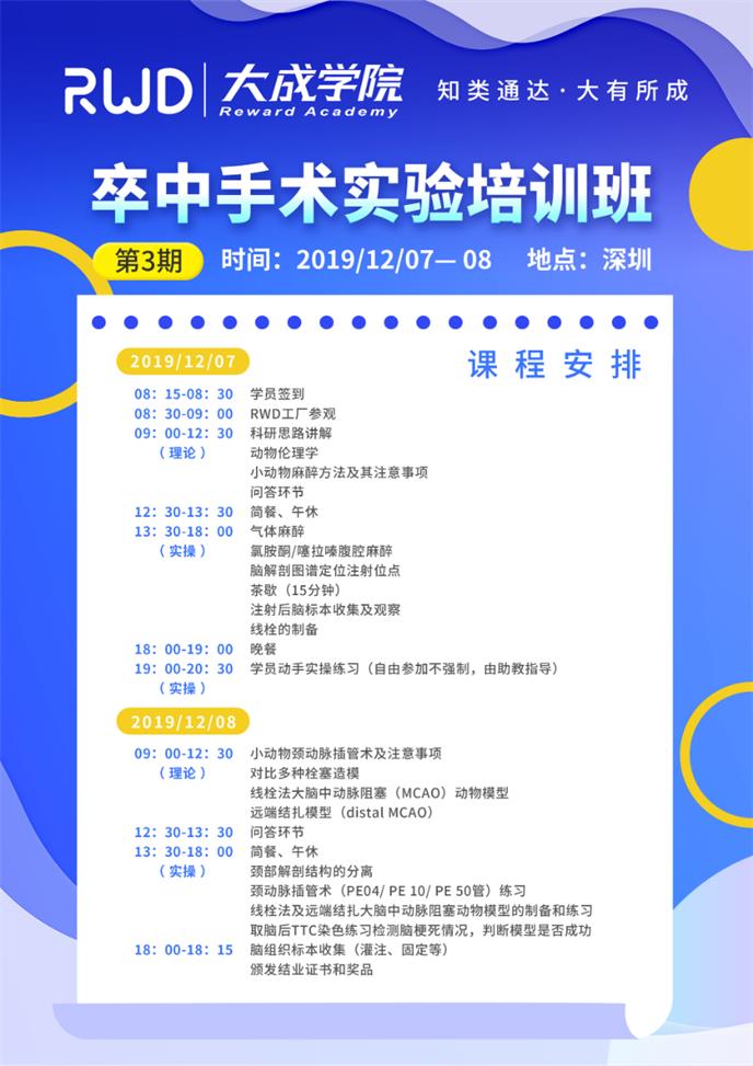 培訓(xùn)中除了理論講解和實操指導(dǎo),還將新增科研思路梳理,助力學(xué)員提升研究效率;橫向?qū)Ρ榷喾N造模方法,全面學(xué)習(xí)線栓造模技術(shù);助教課后輔導(dǎo),可進(jìn)行多次實操。培訓(xùn)干貨滿滿,不容錯過!
