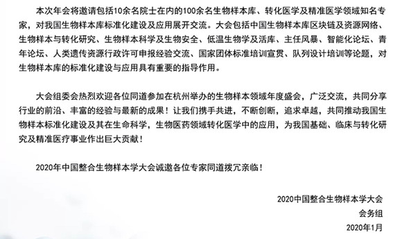 2020中國(guó)整合生物樣本學(xué)大會(huì)通知