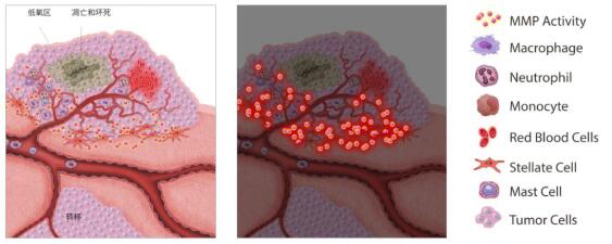 圖1. 基質(zhì)金屬蛋白酶在組織重塑區(qū)域中具有活性,在這種情況下,在腫瘤生長、侵襲和血管形成部位處MMPs高度表達且具有活性。